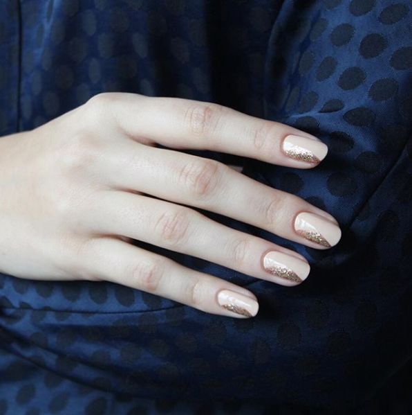 但金色美甲不适宜大面积涂抹。局部金色点缀,闪边勾勒足以让人成为焦点。