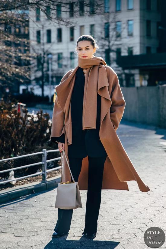 大衣+阔腿裤的优点可多了,首先就是质感好,尤其博主Christie Tyler用驼色大衣搭配成套黑西装,是“不敢惹的女大佬本人”没错。