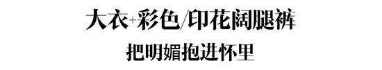 你会发现大衣+阔腿裤风格何其多,可纯色系质感,也可以借用彩色和印花阔腿裤召唤出完全不同的隐藏风格。只要你尝试的足够多,冬天的暗淡就追不上你。