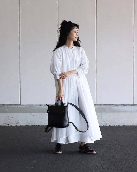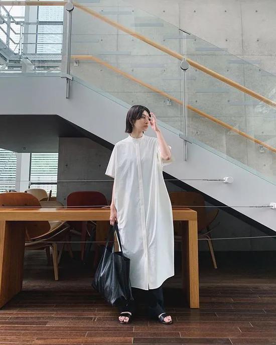 我倒是蛮喜欢看她最近买了哪些大袍子的,哦,就是宽松大摆的连衣裙,她们喜欢叠穿,里面加一条挺括有型的半裙,能把大衬衫衬的更有立体感。