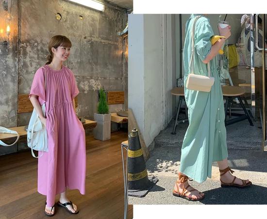 大概因为自己是店主的原因,所以经常用同一款式来做不同的搭配,连衣裙换个颜色,也可以换个包包和鞋子。
