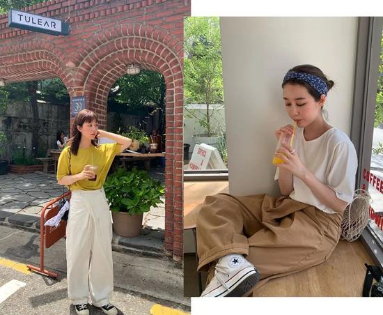 而且日本女生就偏爱阔腿裤,即使上面是宽松上衣,也不妨碍她们穿浅色阔腿,都说了人家不在意自己身高的啦! 喜欢这种风格的妹子我真的蛮推荐去尝试的,都2020了,谁说穿衣风格就一定要显高啊?
