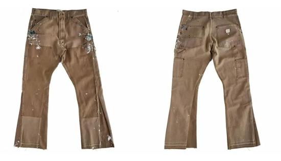 Gallery Dpet。 主打 Remake 的洛杉矶品牌 Gallery Dept。近年来最火单品便是用 Levi‘s 501 和 Carhartt B01 两种裤型改造的微喇叭裤。