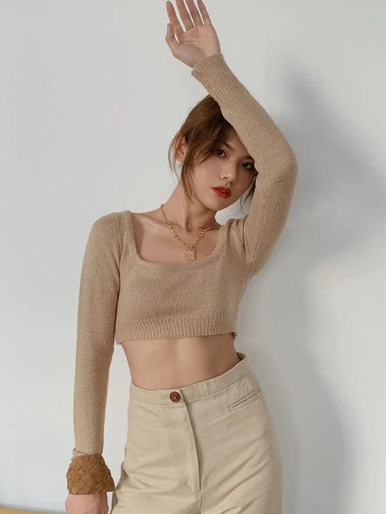 今年秋冬会很流行短款的针织衫,这一件的版型设计都是我特别特别满意的。虽然它有点透、有点「裸露」,但穿上它可以毫无保留把女人最性感最美妙的气质展现出来。虽然Jacquemus很多衣服不日常,但这也是我爱它的地方。 裙子来自Musier Paris,腰身线条的设计也流行起来了,它很好呈现腰部的线条,很显瘦!这条半裙的质感是很不错的,但因为它是鱼尾裙的设计,臀胯比较宽的女生穿可能会更凸显出来,如果你自己不介意的话那也没关系。