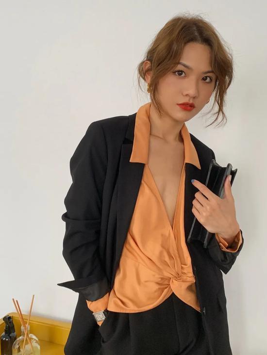 这次秋季穿搭少不了必备的西装look!西装和衬衫搭配黑色短裤,很飒就是了。 预估这个秋冬会流行黄橙色,所以衬衫我选择这件很适合黑黄皮的橙色丝质衬衫,亮眼的颜色和柔滑的材质平衡了西装带来的正式沉闷感。 衬衫:L'Academie 外套:EVERLANE 短裤:TOTEME 鞋子:Simon Miller 包包:Chanel 腰带:Bottega Veneta 手表:Cartier 耳环:MISSOMA