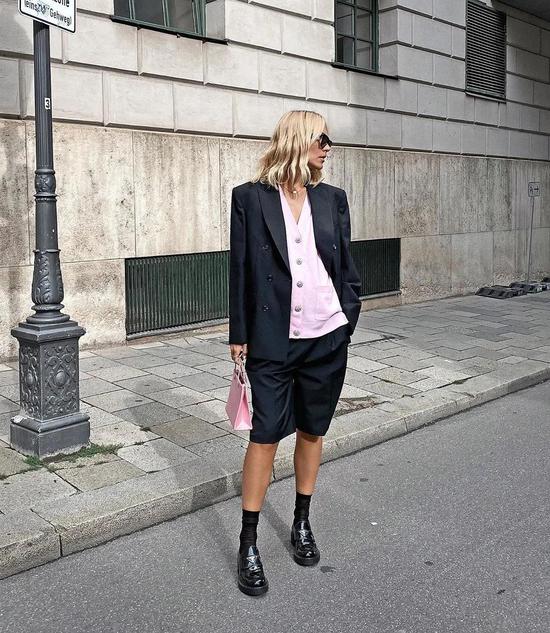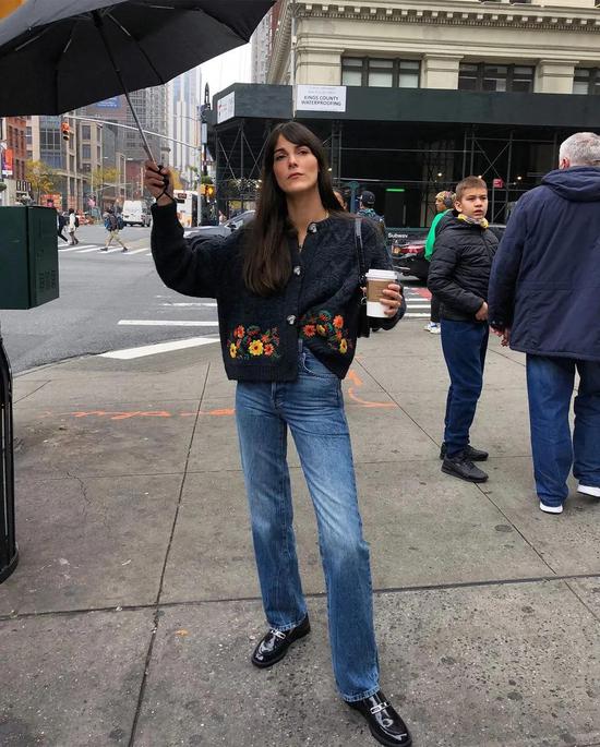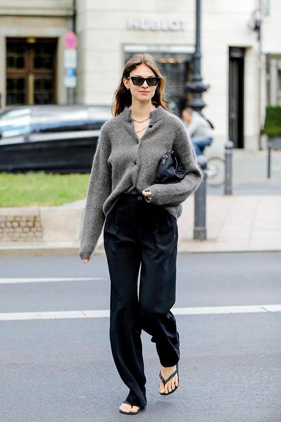 而且今年,针织开衫+解开扣子穿=时髦套餐。别说,就是解开两颗扣子这么简单的操作,也能让针织衫一秒换了性格。 搭配好墨镜、腋下包,这个造型除了要求你腰腹不能有赘肉以外,没什么风格上的门槛。