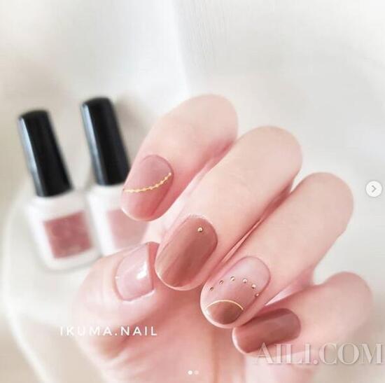 奶茶色着实是火了,从腮红到唇膏 奶茶色 “ 无孔不入 ” ,当然美甲也没放过。 奶茶色 ×金箔美甲