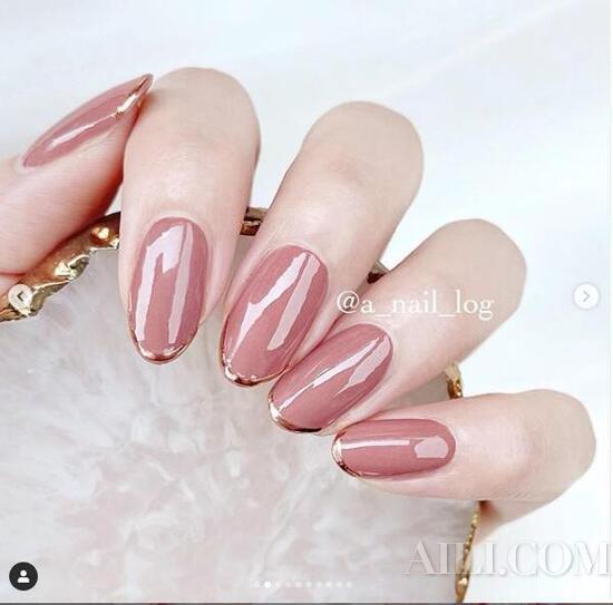 如果想追求极简风格,又不想了然无趣。可以用奶茶色来打底,在指甲边用搭配细细的白边or金属边。虽然低调但不失小细节,温柔又百搭,不管你是上班通勤还是约会,都能完美撑场。