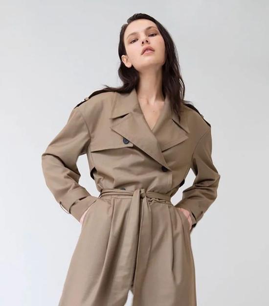 第三种是材质面料上的变动,喜欢风衣的人都知道,风衣是真的很沉,穿在身上的负重感有时候特别强,The Frankie Shop用超轻材料打造的全新风衣,不是为了防风,而是轻到可以”与风玩耍“,这样的全新风衣,或许也是一种新的理解。