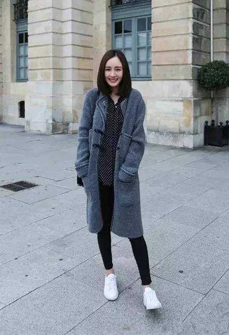 奶白色的廓形针织衫休闲又温暖 一双美腿又细又直! 如她自己所说,要get“我的同款腿” 一双丝袜(厚裤袜)就够惹! 特别是深色系leggings,厚实保暖还能藏肉肉! so,想要同款细直杨幂腿的你,get到诀窍惹嘛?