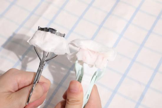 清洁方法很简单,用眼唇卸浸湿卸妆棉,然后用睫毛夹反复夹卸妆棉。