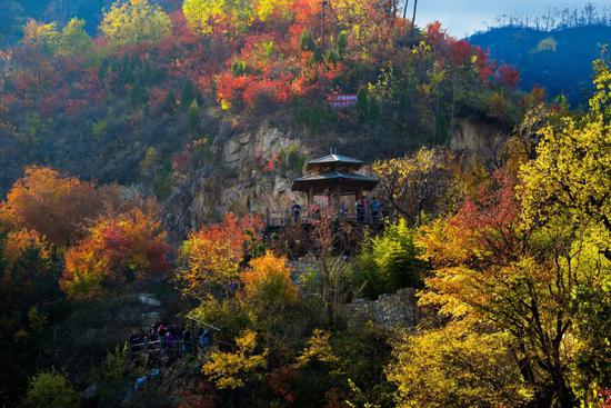 九如山没有太多神话故事,也没有精心雕琢的楼台廊阁,有的只是100%纯净的自然山水。 众所周知,九如山就像是济南私藏的一个洗肺圣地,但却很少有人知道,这里的秋色更是养眼。 满山的彩林,打破秋天单调的色彩,甚至可以说,在这里看到的每一片叶子,都有自己不同的色彩。 黄的黄,绿的绿,红的红,这还不算完,更有跟多中间说不出名字的颜色来中和过度,让整个山头绚丽的意外和谐。