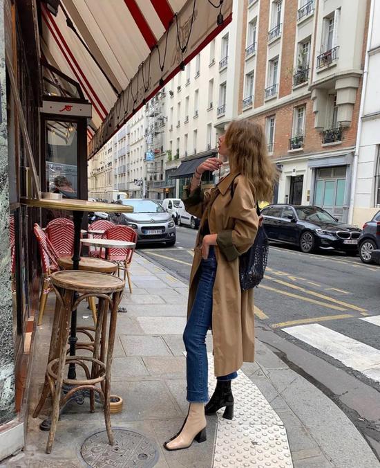 经典的粗跟窄口短靴可以说是相当实穿,与普通版型的基本款仔裤是“最佳cp”。如果裤子把短靴遮起来,没特色不说还会显得下身有点“重”。像这样把裤边整齐卷起,搭配一件简约款外套,显瘦显高没话说啦!