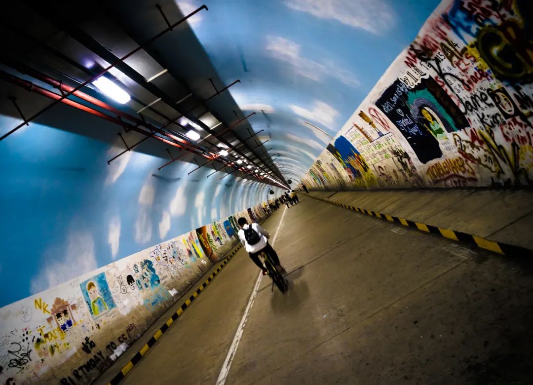坐累了,就去走一走‘芙蓉隧道’。 它是中国最文艺的隧道,是中国最长的涂鸦隧道。 隧道的两边被喷绘了各种图案,每一个都格外有趣。 看着这些涂鸦,没有忍住笑了出来,想起了那段年少轻狂的时光。