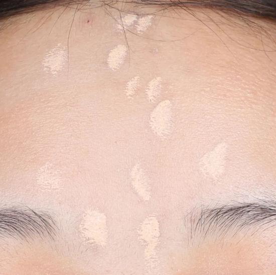 这款涂的时候建议,先点涂,再由上到下顺着毛孔方向用指腹顺着拍开。注意手法,不然可能会搓泥。
