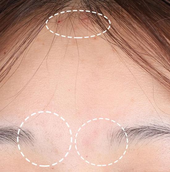 小编最近熬夜,额头部分冒了很多泛红痘痘,正好给大家来测试一下这款遮瑕的效果。