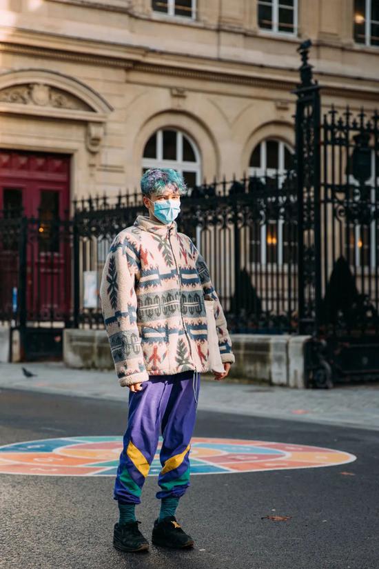 男装周还是先看男生们的街拍,这届虽然大秀好多的都是线上办,但时装精们在秀场外玩的可不是云街拍,可认真了,而且也知道乖乖戴好口罩。
