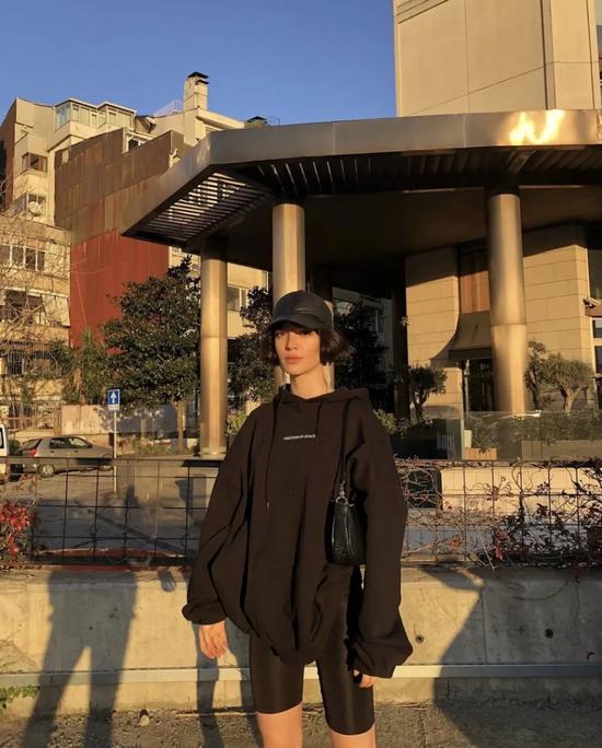 黑色卫衣和黑色骑行裤一起真的把整个人衬得又帅又性感!