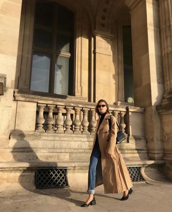 同样一件卡其色大衣,左边是20出头的大学生,右边是大城市的都市丽人