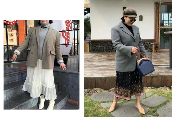 ▲内搭布料柔顺贴身的半裙,sandra pietras也一定会配一件中长款外套,避免暴露宽臀。