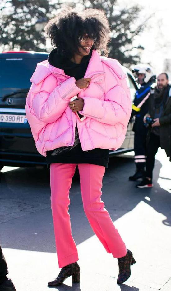 荧光色系的羽绒服外套吸睛力十足,无论是荧光黄还是芭比粉,都能让你成为整条街上最靓的崽!