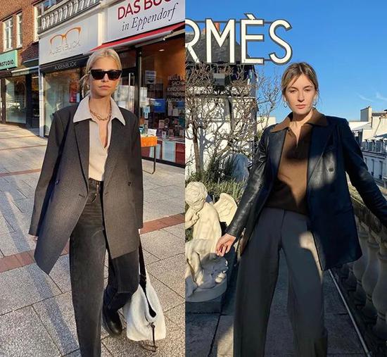 不止是Pernille Teisbaek,欧美博主圈里姑娘们都爱针织开衫+西装的穿法。不过选择单品时有讲究,薄款修身开衫可以搭配瘦窄版型的西装外套,塞在牛仔裤里穿,有腰身有腿长,超级显瘦高! 喜欢宽松版型开衫的女孩,自然有股子不羁的劲儿。宽肩西装与西装中裤的组合适合你,内搭一件针织开衫,你想要的酷与潇洒统统都有了。
