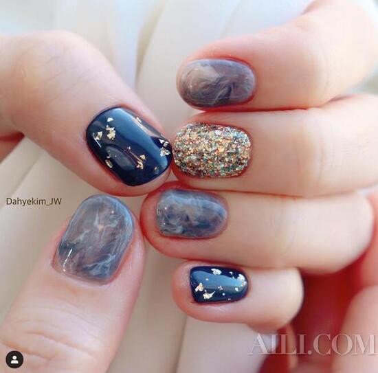 猫眼风格的美甲一直是高级感美甲的 “代言人”,不单是优雅,同时光泽会让整个指尖白皙又修长。不用复杂的颜色搭配,单色与猫眼搭配就非常有质感,再搭配上饰品更显气质。 神秘星空美甲 如果你喜欢深色系的美甲,那么神秘的星空美甲非常适合你。蓝色晕染搭配金箔碎片与金砂,指尖看起来神秘又时尚,每个角度都在发光。