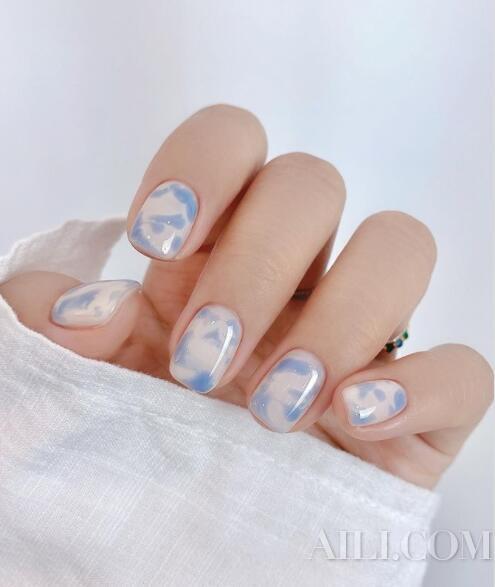 油画感的刷染是今年新兴的美甲款式,颜色的浓淡变化有一种像是油画画布的感觉。雾霾蓝色随性刷染,搭配金属银色,堆叠出不同变化,更加有层次感。 少女心梦幻云朵美甲 可爱与甜美不分家,蓝色白色的运动美甲搭配简直完美。白色作为肌底,用烟灰蓝色晕染出云朵的设计,二者完美融合,是小可爱女生的必备美甲。