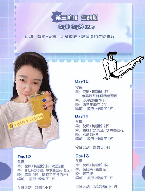 最吓人的来了,还有12天的断食,真的是什么都不吃,只喝水。这让O姐想起了之前特别火的那个液断法,O姐身边的小伙伴说以前着急想减肥的时候,真的尝试过。三天,什么固体都不吃,只喝水、饮料等液体。