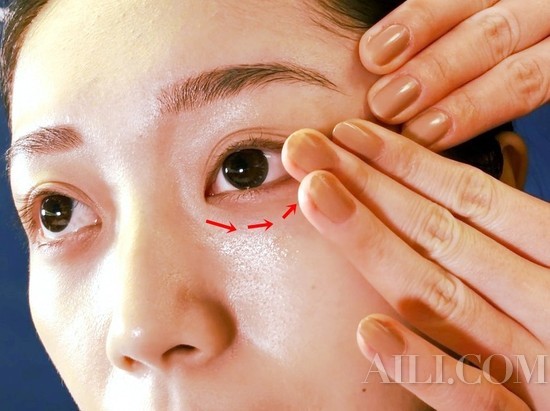 按摩手法 让眼周肌肤充分吸收精华和眼霜后,接着用指腹,延着‘眼头→眼尾→太阳穴’的方向抚过,帮眼周来个提拉按摩,重复3次就完成了居家简单的眼周加强保养!