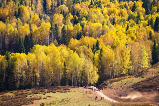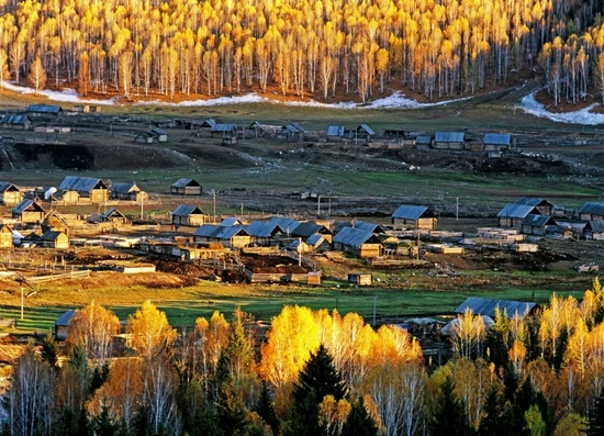 这个中国西北最北端的村子,好像无时无刻都在诉说着久远的沧桑。 金色的阳光尽撒山谷,白色的毡房点缀其中,羊群牛群悠闲地吃着草,骑着马儿的牧民不慌不忙的走过,如此惬意,就连雾气都在这里变得缓慢。