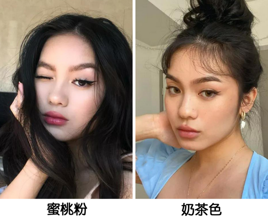 在唇色上更追求裸唇的效果,口红多是蜜桃粉、奶茶色这类颜色,避开粉嫩和鲜艳的颜色,打造天生好气色的裸唇感。