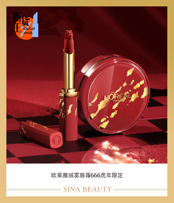 欧莱雅绒雾唇霜666虎年限定 #欧莱雅666#虎年限定上市,点燃唇间新意!红色管身印刻金色虎纹,绒雾膏体精雕立体虎头,以匠心彰显勇气;蓝调正红载以丝绒质地,上唇自信尽现,加持好运!Get#欧莱雅虎年限定# ,新年破雾而出,落子无悔!