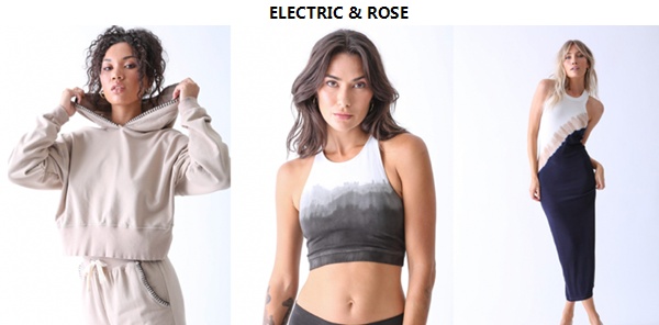 ELECTRIC&ROSE于2014年由ErinChiamulon和EricBalfour在洛杉矶共同建立,以威尼斯海滩的两条标志性街道命名。它大胆的将海滩氛围与城市风格相结合,并从生活的探险中获得运动服的设计灵感,为女性打造了常青的日常系列。凭借着其亮眼的手工染色技术和柔软灵活的弹力棉面料广为人知和喜爱。无论是沙滩瑜伽、日落冲浪、或是周末野营,ELECTRIC&ROSE都能完美匹配你的穿搭需求。