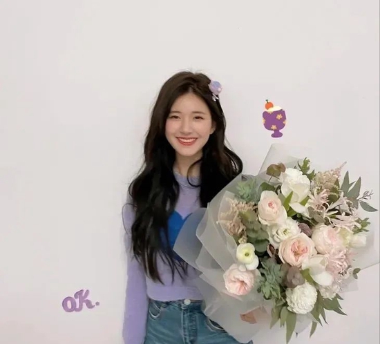 女明星常常会收到各种好看的花束,镜头虽然能够留住这份片刻的美好,但也是很挑角度的。