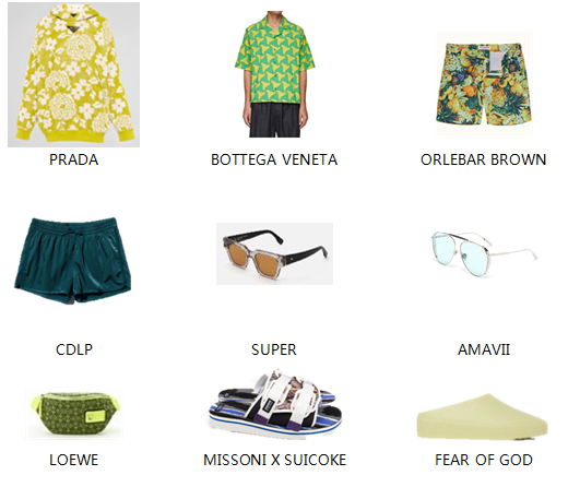男装则以BOTTEGA VENETA、CDLP、ORLEBAR BROWN、PRADA等品牌为带领,以大玩不同色彩和印花图案的夏季单品,让街头风及沙滩风在本季兼备。独特的花朵、几何图案和充满活力的色彩,融合冒险精神、奢华休闲风格及精致布料,搭配上AMAVII和SUPER太阳眼镜、SUICOKE凉鞋,令整体造型更显完美。