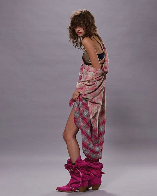 转载自:VOGUE 原标题:现在最流行的是一双皱巴巴的“靴子”? 又到穿靴子的季节,打开购物网站,你就会发现,大家好像都在买差不多的货色:深的、浅的、高跟的、低跟的、皱皱巴巴的长靴。 引领这个潮流的首先要提名Miu Miu,糖果色轰炸,紧身得像堆堆丝袜。 Louis Vuitton主打加绒加厚款,保暖一步到位,让你今年冬天冷不了一点。 Louis Vuitton Fall 2025 Ready-to-Wear 其次,麂皮材质是主流。 Ralph Lauren 秋冬系列,外套、包包、靴子,恨不得一身都被麂皮裹住。 Ralph Lauren Fall 2025 Ready-to-Wear 重新回归经典法式风味的Celine,优雅的小尖头,看起来精致不少。 Celine Resort 2026 Isabel Marant从今年春夏乃至明年早春系列,相继推出了不少类似货色的中短款麂皮靴。 Isabel Marant Fall 2025 Ready-to-Wear Isabel Marant Resort 2026 张婧仪今年的生日大片,穿的就来自Isabel Marant,流苏一加,波西米亚风扑面而来。 欧阳娜娜这双同品牌的带铆钉款,更有驰骋音乐节舞台的女歌手范儿,约6880元。 这么一看,还是有不少讲究的。 这样皱皱巴巴、松松垮垮型的长靴,全都往脚踝上堆,一股“躺平”的松弛感。 R13 Spring 2025 Ready-to-Wear 优点很明显,像之前杨幂出席戛纳电影节穿的这双Loewe,能和露出的长腿进行对比,突出一个腿细,售价约2万1。 而Jennie今年亮相科切拉音乐节现场、BlackPink回归演唱会,刷屏的过膝款长靴,均来自中国品牌DIDU。虽然拉风,但穿不好就像下河捕鱼。 不过胜在品牌设计考虑周全,靴筒足够长,靴口有暗扣调节松紧,可以自由伸缩搭配,玩法多多,售价5200元。 日常来说,短款的明显要更好驾驭,不至于把腿分成两截,秒变五五分。 钟楚曦穿的两双同款不同色的堆堆西部靴来自Berad Tree,约1600元。 欧阳娣娣这双来自Toomanyshoes,颜色饱和度更低,奶fufu的,能视觉上降低一些靴子的厚重累赘感,性价比不错,约329元。 说到实穿,最好还是选择“三分皱”,既跟上了时髦,又比较百搭不容易出错。 像加拿大博主Zarayna Ferguson,这个月已经搭了无数次的长靴来自纽约品牌Dolce Vita,和下半身失踪穿搭简直绝配,约2000元。 瑞士博主Fredrica Eriksson这双NELLY,约700元,属于是“假两件”裤筒靴的分支,正如其名,像在腿上套了个裤管。 他们家靴款普遍是偏矮的粗跟、小猫跟,和宽靴筒形成对比,显得人要轻盈一些,而且比起别的高跷,驾驭难度也较低。 不一定非得把紧身款裤子塞进去,平时搭配宽松一些的直筒牛仔裤、西裤都不违和,大衣一穿,走路带风。 挪威博主Dina Hansen这双来自Blankens,圆鞋头+平底,长得更乖巧,约3000元。 类似的还有美国模特Amelia Gray这双来自来自THE ATTICO的,一整个慵懒又保暖。 Paris Texas尖鞋头+异形跟,带一种复古未来感,约8800元。 麂皮的配色也很特别,特调的乌木色、桃心木色,闪光灯下呈现出渐变色泽,非常迷人。 安妮海瑟薇最近拍《穿Prada的女魔头2》,上脚的一双红棕色鳄鱼压纹长靴,也来自它们品牌。 意大利品牌Marsèll这双,款式简洁不繁杂,皮质肉眼可见的软糯,小腿比较肉一些的也能轻松驾驭。 总之,可预见的是,堆堆靴在今年秋冬真的会大行其道。以上这些,你有种草的吗? 编辑:Tristan 设计:小乙 |